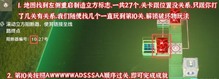 在地图找到左侧重启制造立方标志,一共有27个,找到几个后一直玩到第10关解锁破坏物玩法
