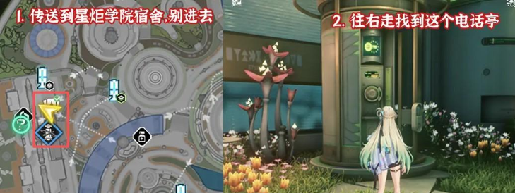 传送到星炬学园宿舍,往右走找到电话亭