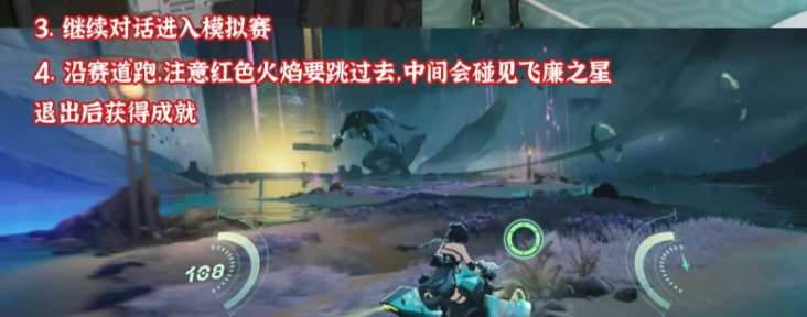 沿赛道跑,注意红色火焰要跳过去,中间会碰见飞廉之星,退出后获得成就