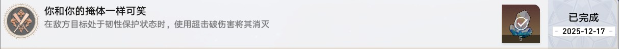 崩坏星穹铁道你和你的掩体一样可笑成就达成条件,成就要求:在敌方目标处于韧性保护状态时,使用超击破伤害将其消灭,完成成就的关键点:1.有韧性保护机制的敌人【惊梦剧团的甜猿泰山】2.战技【舔舐...背叛伸出火舌】。