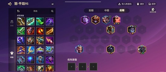 装备方面:因为铲子装备比较少,我建议是先做千珏的羊刀海妖,塞拉斯的法爆和回复装,然后就是其他牌的偷偷,前排的肉装有就做即可