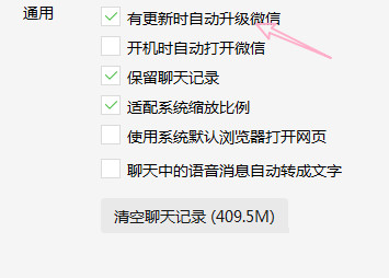 进入新界面后,找到"通用"中的"有更新时自动升级微信",将其勾选上就可以了。