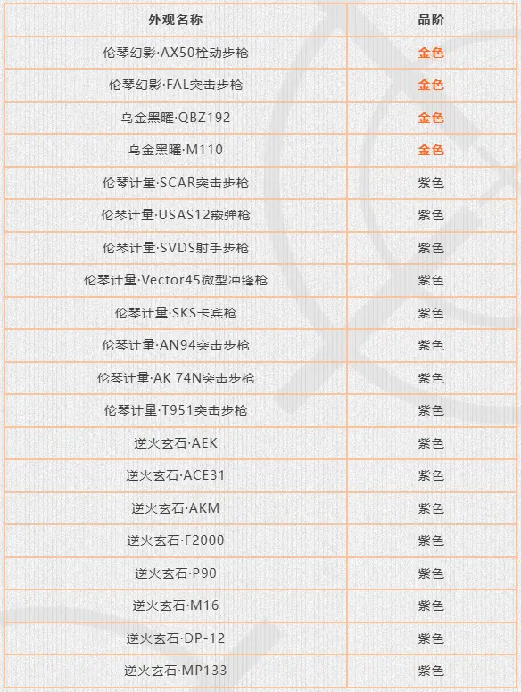 《暗区突围》S16赛季更新后,每日商店将新增多款武器外观,包括全新涂装与主题皮肤。这些外观将通过商店刷新机制随机上架,供玩家获取与搭配。以下是本次新增外观的具体介绍。