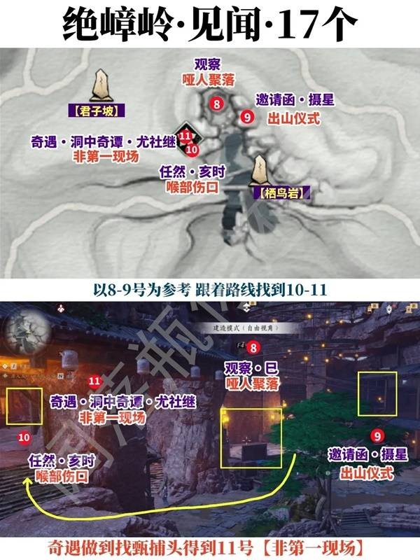 燕云十六声不见山·绝嶂岭区域共有 17 个见闻等待玩家探索与收集!为了帮助大家轻松完成该地区的见闻收集,这次特别带来由玩家阔落瓶,下面帮你整理了一份燕云十六声不见山·绝嶂岭见闻全收集指南,内容详实、指引明确,希望能真正助你一臂之力,快速完成收集目标~