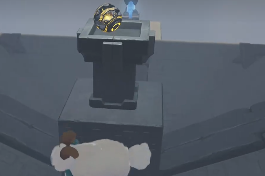 挑战要求在倒计时结束前拾取全部散落的能量光点。推荐采用顺时针绕行策略,确保覆盖无遗漏。成功完成后,中央传送装置将被激活,允许继续深入。抵达最底层核心区域后,一座结构类似巨型魔方的浮空建筑将显现。此时需切换为具备飞行能力的伊莫形态,飞抵建筑顶端并执行交互指令。