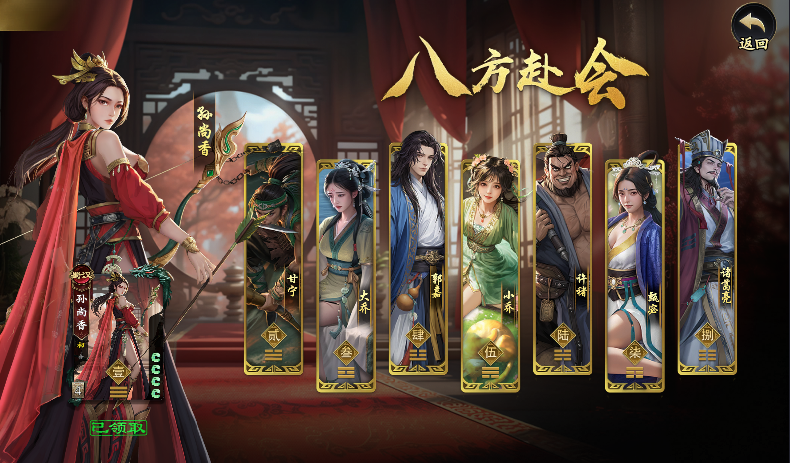 该活动为新账号专属福利,玩家创建角色并进入游戏后,可在活动中心直接参与。每日完成一次登录即可领取对应武将碎片,连续签到满8天,可完整获得孙尚香、甘宁、甄宓、郭嘉、许褚、小乔、诸葛亮共8位初始主力武将,无需额外操作或消耗资源。