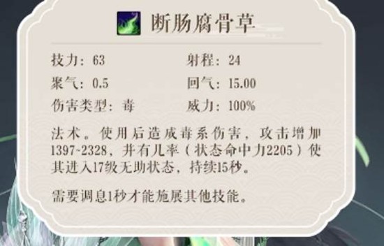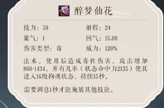 它的特殊机制是毒系技能每次命中敌人都能叠加提升玩家自身的攻击力,形成一个越打伤害越高的循环。同时,断肠草还有概率使敌人进入无助状态,降低其攻击力,这大大提升了毒医在天下万象战斗中的生存能力。醉梦仙花则是一个重要的增伤技能,它的作用是降低敌人的防御力,从而间接提升毒医所有技能的伤害输出。