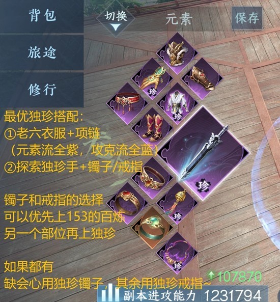 在镯子和戒指的选择上,可以优先上153的百炼,另一个部位再上独珍