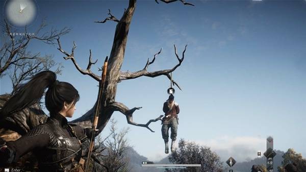 1、在乱葬岗界碑附近的树下,用弓箭射击绳子救下赵铁;