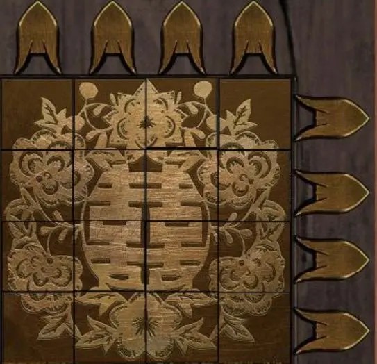 8.点击亭子中的柜子,结合大门两侧的对联,完成柜子左侧机关,左为喜成連理,右为永结同心。