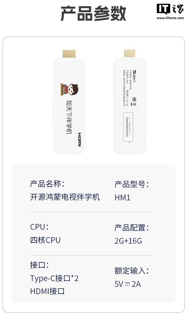 该产品搭载国产 GK6320 芯片,以及开源鸿蒙 5.1 系统,具备系统级投屏功能,采用 HDMI 接口直接插入电视大屏即可使用,让电视“秒变学习机”。