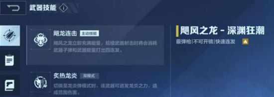 飓风之龙作为一把火焰属性的霰弹枪,其主动技能“飓龙连击”可以消耗子弹和能量进行四连发攻击,而被动技能“炙热龙炎”则能切换为具有穿透效果的龙炎弹模式。
