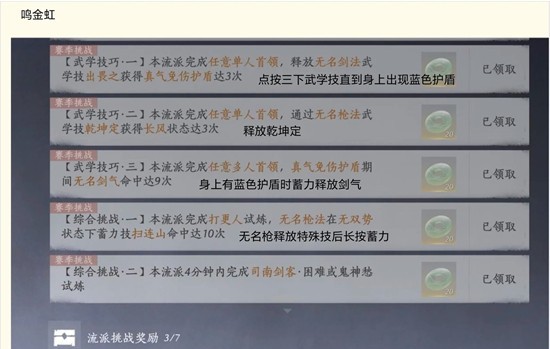 任务目标:宝子进去试炼后用无名剑武学技派生触发护盾三次,使用无名枪武学技三次触发长风(两个boss都要做到)