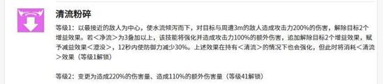 智河米尔的召唤技能,能够召唤龙对敌人造成280%攻击力的伤害。当智河米尔自身拥有净流状态时,此技能会额外附加190%的伤害。若消耗三层及以上的净流层数,则可以驱散目标身上的4个增益效果,同时智河米尔自身会获得净流与激流两种增益,这些增益能有效强化她后续的激流斩等技能。当净流叠加至五层时,其提供的增益效果会更为显著。