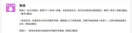 是智河米尔的核心状态技能。使用后,智河米尔会为自己和队友施加净流状态。净流层数会在我方角色使用主动技能时进行叠加,最高可叠加五层。每层净流能提升角色60%的伤害。当驱散敌人增益时,还会赋予目标“抹净”减益,在12秒内减少其15%的移动速度。