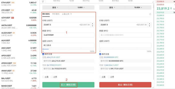 2、此处以BTC/USDT交易对的现货和合约模式来演示:在币币交易页面,买入相应数量的BTC;在永续合约交易页面卖出相应数量的BTC做空。