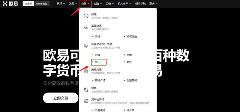 3、通过首页【交易】-【杠杆】进入合约交易页面