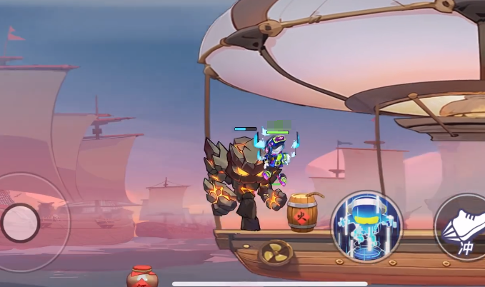 区别于常规擂台式对战,刺激战场采用开放式大地图设计,支持三人组队协作。本模式不以投篮得分为核心目标,转而强调近身打击、技能打断与地形互动。场景中分布多层浮动结构,包括巨型舰船、悬空甲板及可攀爬桅杆,为立体化战斗提供丰富空间。玩家需灵活运用二段跳、墙体蹬踏等机制,在高低差之间快速转移,实现战术压制。