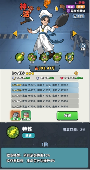 厨神:降低承伤,生命百分比提升