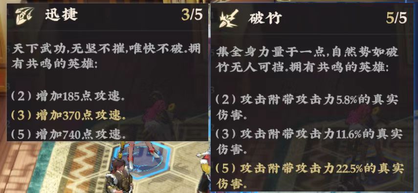 此外,程应华可激活两项关键羁绊:“破竹”与“迅捷”。其中,“破竹”随等级提升增强真实伤害附加比例,满级(5级)时每次攻击可附带22.5%攻击力的真实伤害;“迅捷”则专注于攻速成长,5级状态下提供740点攻击速度加成。双羁绊叠加,使其在高频打击与穿透压制方面形成显著优势。