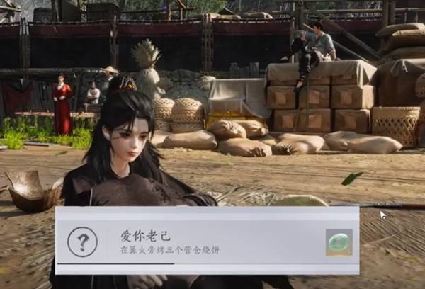 烧饼每日限购一个,获取三个后到达下图篝火处烤三个即可获得成就“爱你老己”。