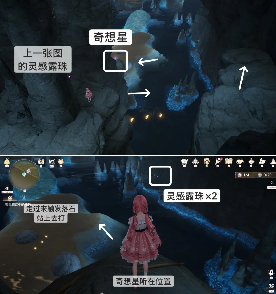 2、到达【溶洞深处】奇想星×2、灵感露珠×15
