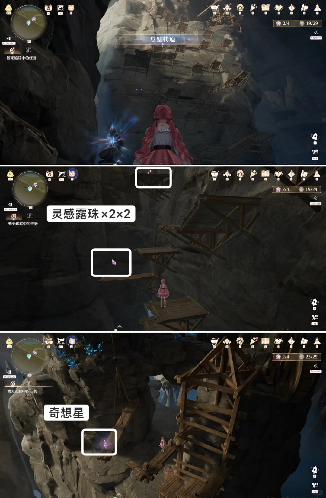 3、到达【悬壁栈道】奇想星×2,灵感露珠×19