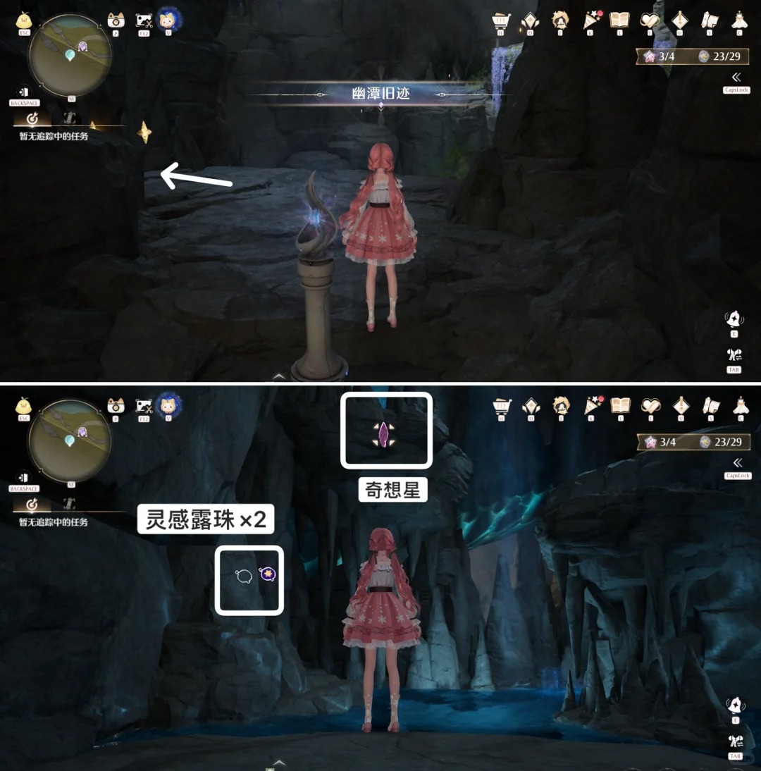 4、到达【幽潭旧迹】奇想星×3,灵感露珠×23