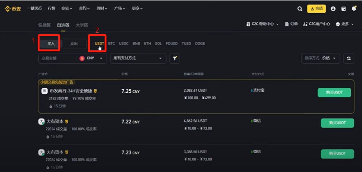 接下来Binance (币安平台) ☞☞进入官网☜☜☞☞官方app下载☜☜就会为我们筛选出符合要求的商家了,我们尽量要找成交量和成交率高的商家来进行购买,因为成交量和成交率高的那些些人,他们是比较有实力的,是比较靠谱的一些商家。开通虚拟币账户并完成首次交易并非难事,但需谨慎选择平台、严格遵守安全规范。本文以币安为例,详细拆解了开户到买币的全流程,并附上关键步骤的图文说明,旨在帮助读者快速上手。然而,虚拟币市场波动性大、风险较高,建议用户在入场前充分了解市场规则。以上就是怎么开通虚拟币账户?虚拟币开户详细流程及买币图文教程,更多虚拟币资讯和知识请查看本站内的其它文章!