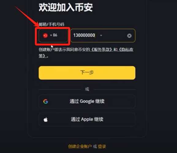 这里我们使用邮箱或手机号码注册都可以。可以看到我们中国大陆的手机号也是可以进行注册的。但是我们一般更加建议使用邮箱注册。因为这样,即使我出国了,继续使用它也不会特别的麻烦。