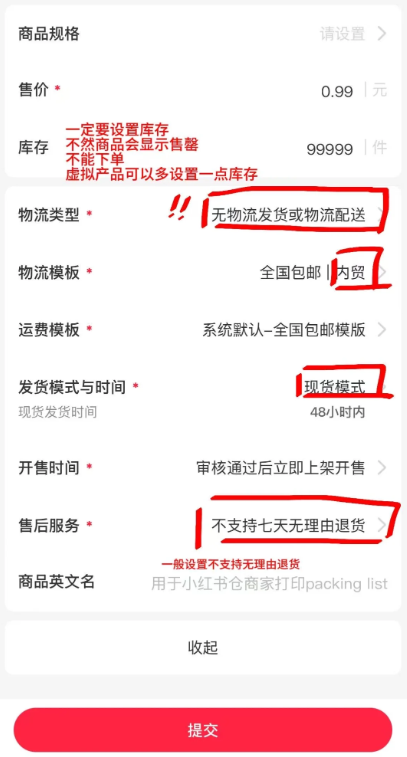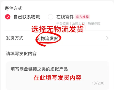 8、输入发布商品的相关类型,商品类别可以选择艺术品及周边-艺术定制-虚拟定制,物流也需填写为无物流发货并提交