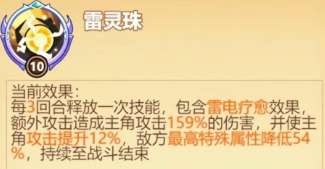 雷神,一技能,满阶的情况下,提升最高特殊属性50%,走击晕+暴击的流派,如果主加击晕,可以增加50%的击晕概率,极大提升击晕对方的可能性,让对方一直无法出手,被动挨打。二技能会降低对方的最高特殊属性,让对方的特殊属性触发的概率大大降低。且哪怕对方解除击晕,打了自己,雷神马上又能奶回来