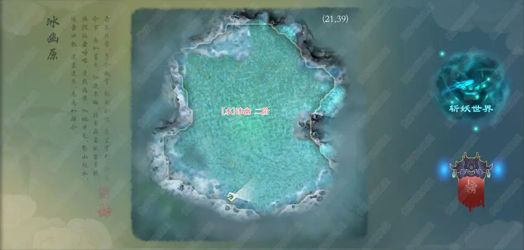 石头村最上方宝箱旁边击杀迎亲童子会出现巡山小妖,跟着巡山小妖走进入冰幽原传送点