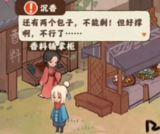 物品消耗:荠菜馄饨1(面粉1猪肉1荠菜2)、佳酿1(杂货摊兑换鸡蛋1小麦6)