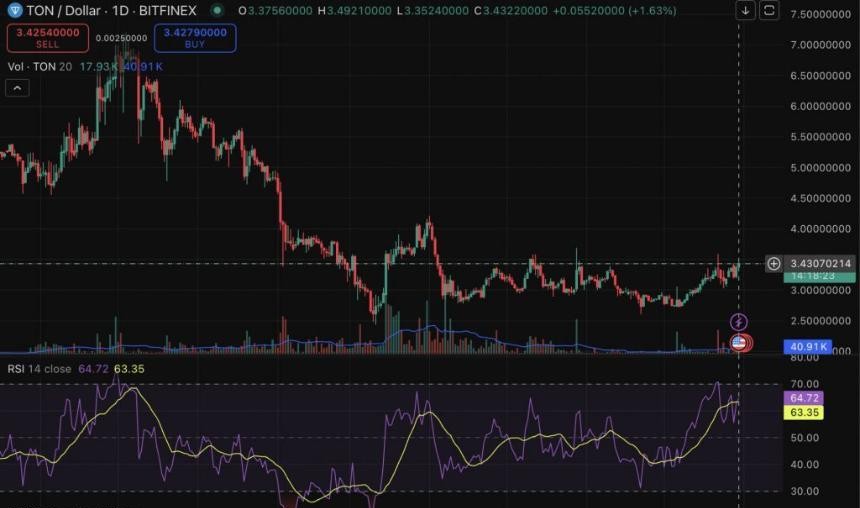 Toncoin (TON) 近期表现出强劲的逆势上涨趋势,在整体市场面临调整的情况下,其在多个时间范围内均呈现显著反弹。根据 CoinGecko 的数据显示,TON 在过去 24 小时内上涨了 3.9%,周线图上涨了 3.1%,14 日线图上涨了 9.3%,而上个月更是大幅上涨了 18.3%。尽管如此,自 2024 年 7 月以来,该资产的价格已下跌 48.4%,显示出较大的波动性。