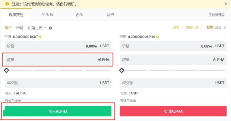 2.进入现货交易板块搜索ALPHA/USDT交易对