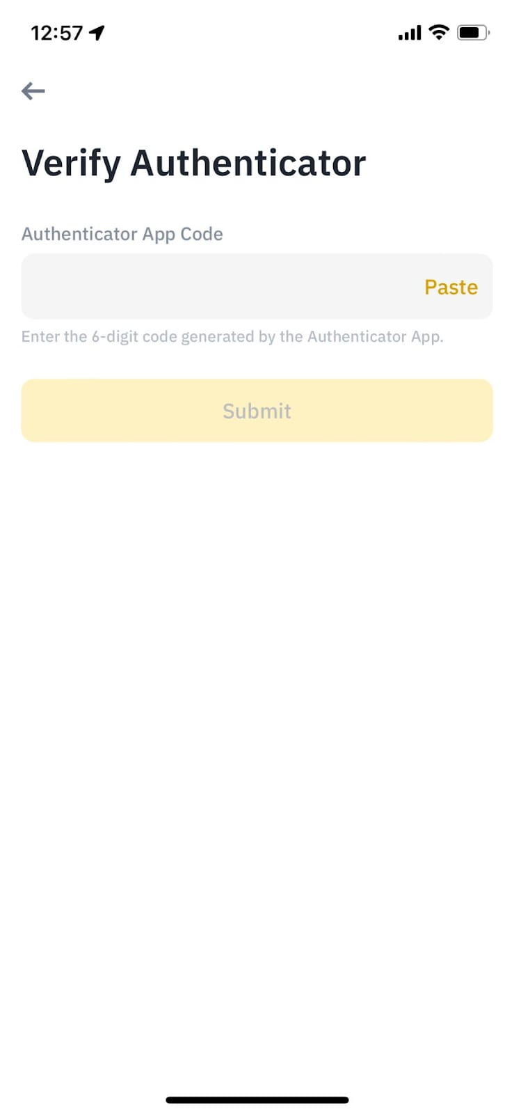 5.输入App生成的6位验证码,验证您的币安验证器。
