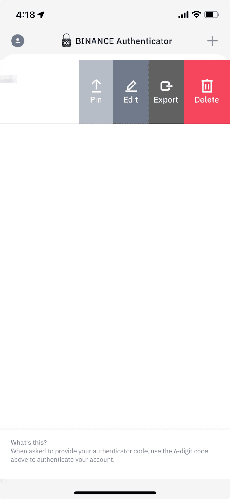 1.您可以向左滑动验证码以【固定】、【编辑】、【导出】或【删除】账户。