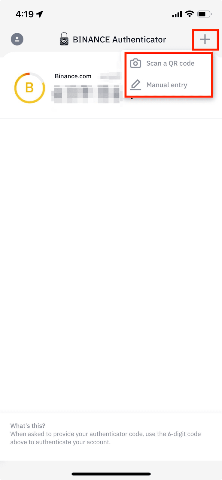 扫码成功后,币安验证器App会自动添加币安账户条目。