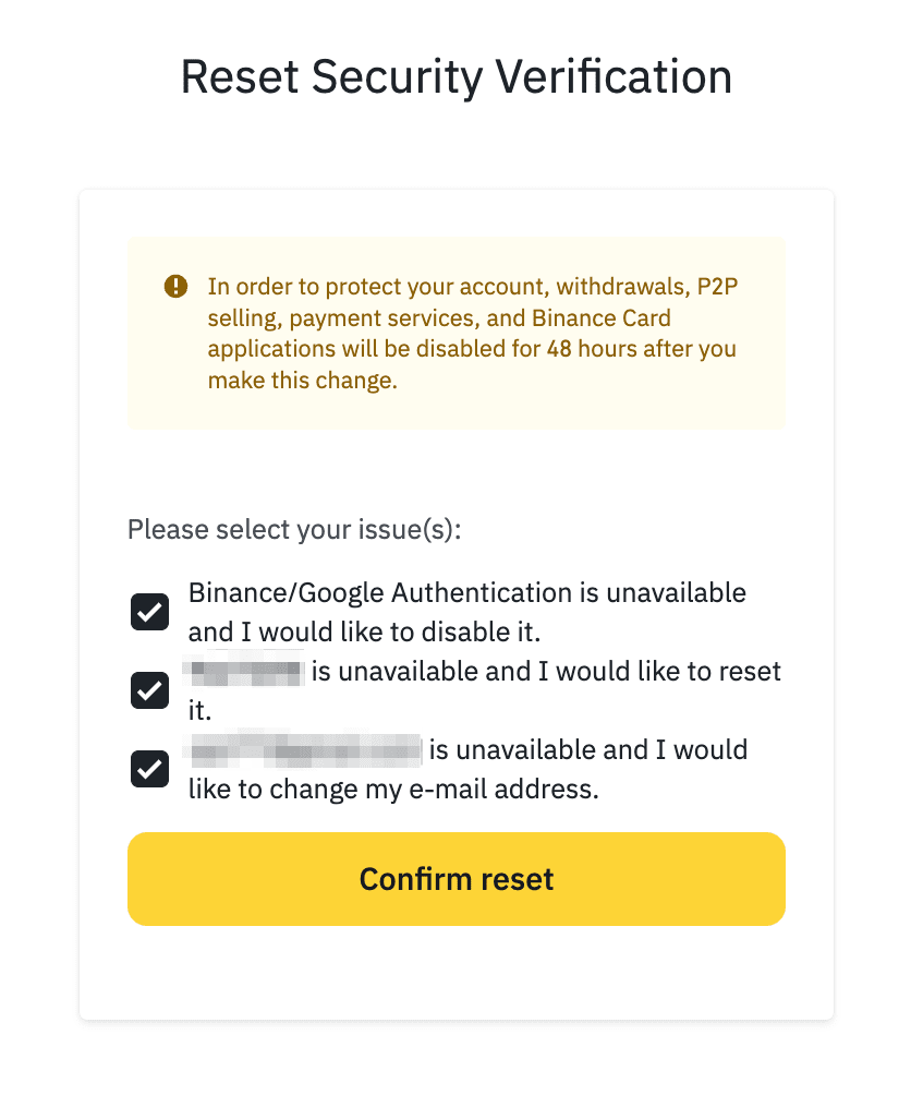 (5.您的2FA设备将被重置。请使用新的2FA设备登录您的币安账户。如果所有2FA设备都无法访问:(1.选中所有2FA设备旁的复选框,然后点击【确认重置】。