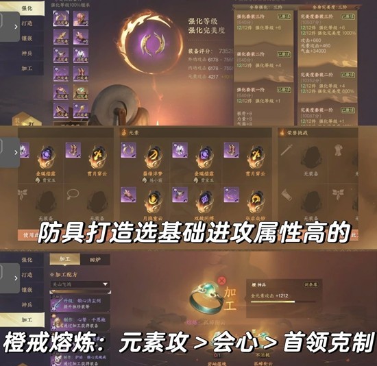 橙戒词条熔炼:元素攻>会心>首领克制(熔炼要升级2次橙戒后开启)