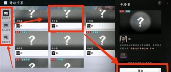 1、在【奇珍宝鉴】界面追踪鹳长老及其他游侠发布的「寻珍鉴」