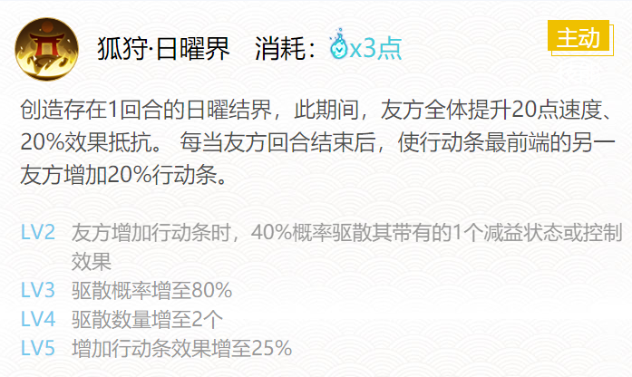 火灵保证式神开场有足够的火,布置战局,增加行动条及驱散、提升抵抗攻防。
