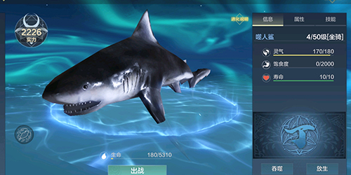 2.蠃鱼,水陆两栖坐骑,水中的移动速度比其他水生物更快,战力也比水生物更强