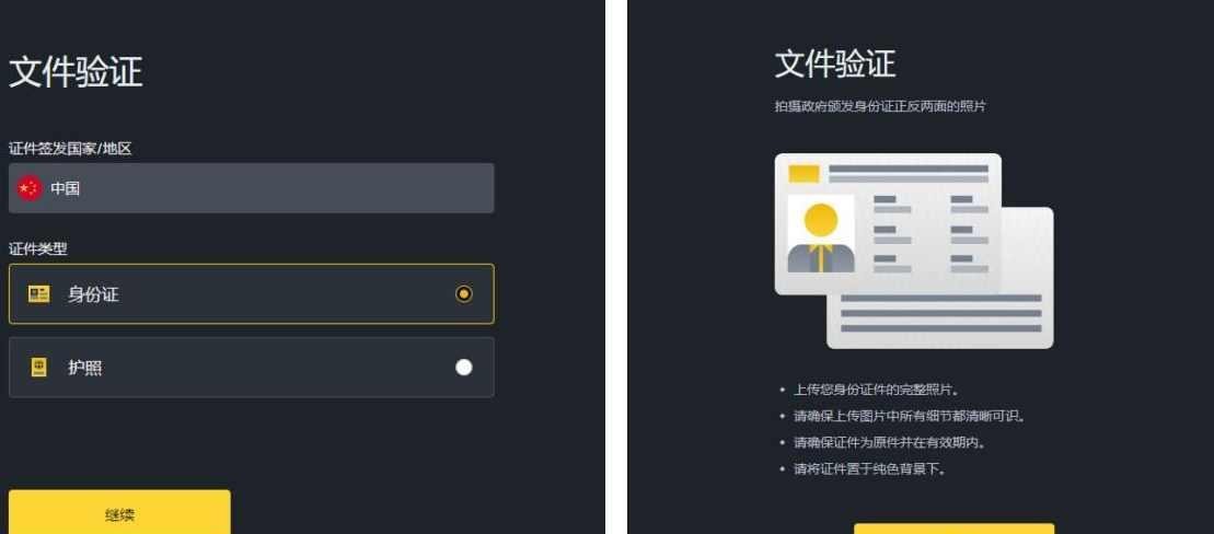 5、在这里,您可以看到相应的验证类型:证件签发国家/地区、拍摄官方颁发身份件正反两面的照片。不同国家或地区的限额各不相同。点击【证件签发国家/地区】的按钮,可以选择您的居住国或地区。