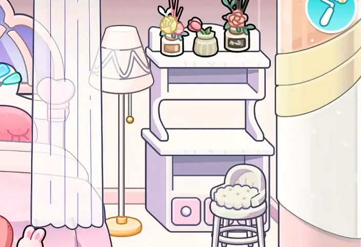 第五步:延伸个性化表达。可在地面铺设圆形绒面粉色地毯,墙面悬挂卡通化公主主题挂画,或于窗台添置毛绒玩偶摆件。所有延伸装饰均基于玩家自主选择,不改变主体配色体系(主色:粉色;辅色:白色)与风格定位(可爱、梦幻、少女向)。