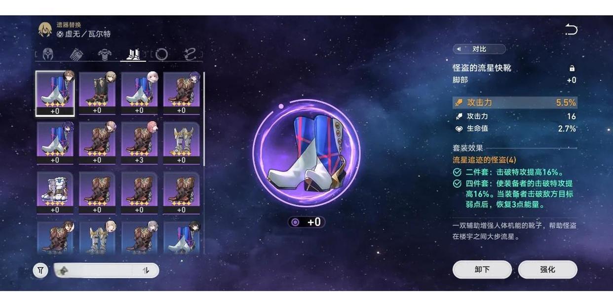 4件套套装:废土客4件套首选,适用于大部分场合。如果想要让瓦尔特专门针对虚数boss,怪盗4件套会更合适。