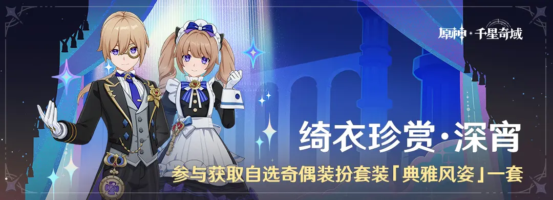 参与原神「绮衣珍赏·深宵」活动,即可获得自选奇偶装扮套装「典雅风姿」。以下是活动的详细参与方式与奖励内容介绍,供各位旅行者参考。