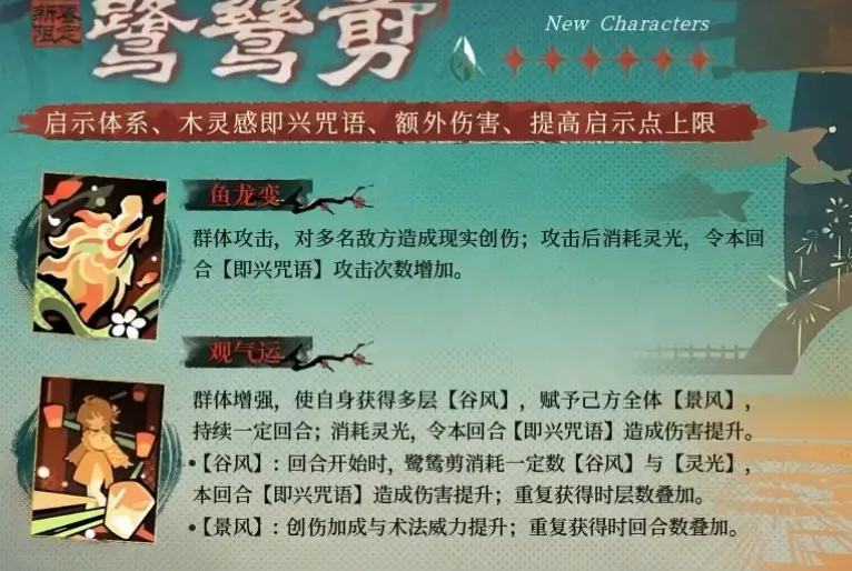 ·【景风】:创伤加成与术法威力提升;重复获得时回合数叠加。