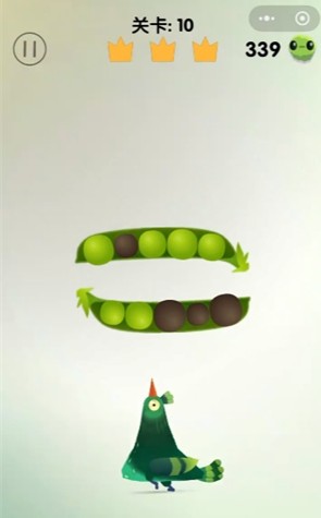1、观察豆荚的青豆和黑豆位置,瞄准啄掉青豆。